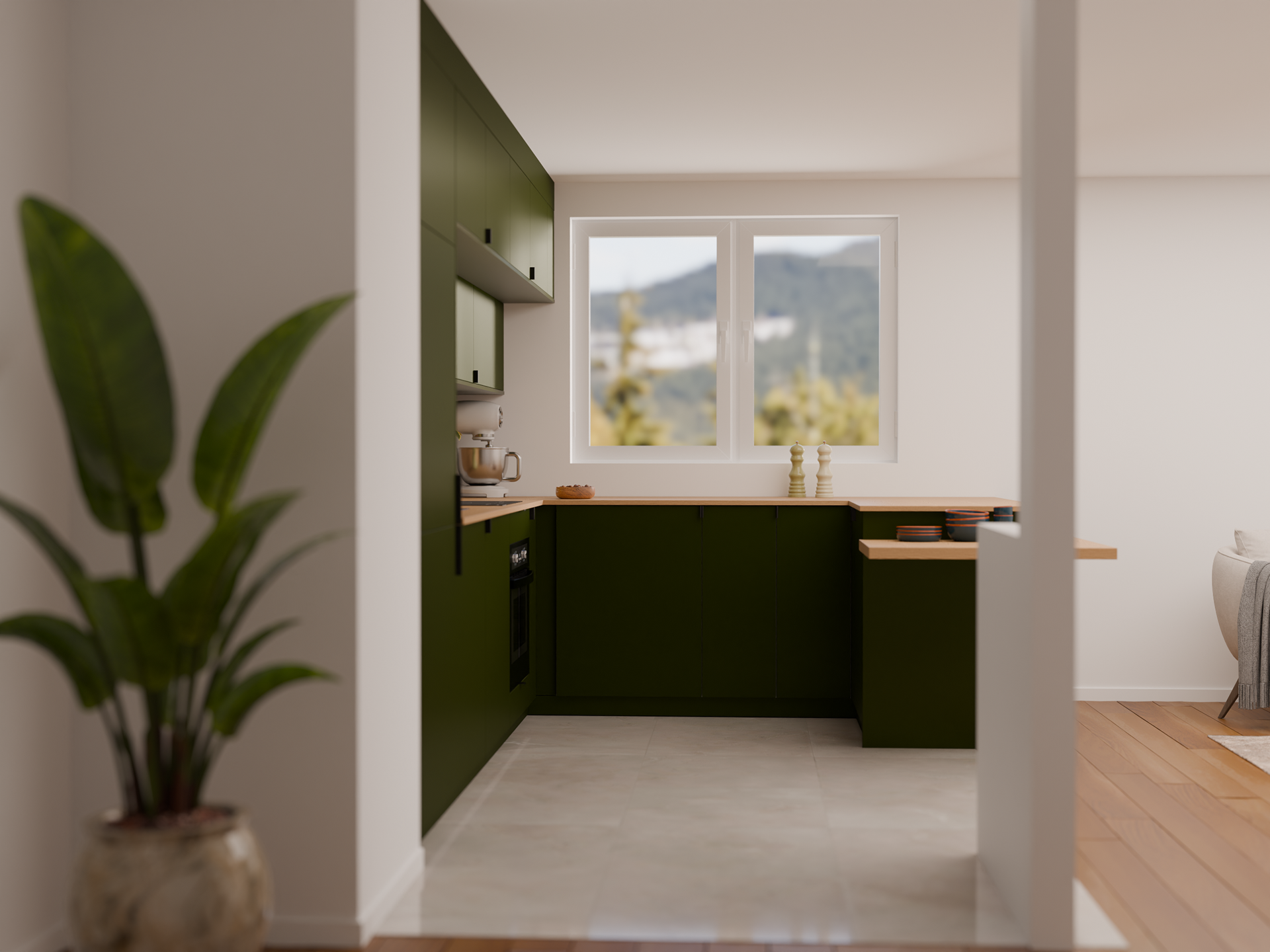 This includes the creation of photorealistic kitchen renders, material and color variations, and interactive visuals designed to help customers visualize the final result with accuracy and emotion.